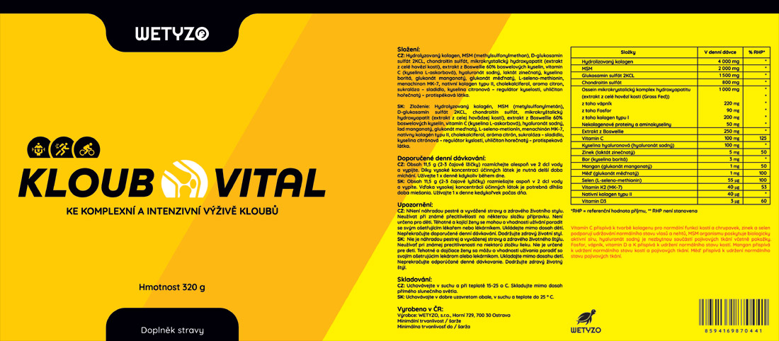 • Spektrum dobře vstřebatelných vitamínů a minerálních látek pro zdraví pohybového aparátu